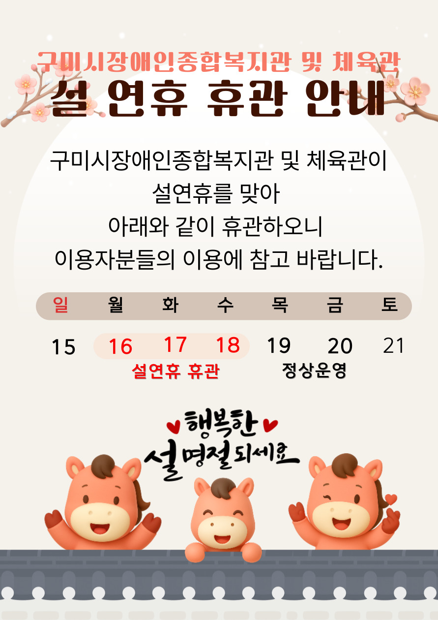 26년 2월 설연휴 휴관안내