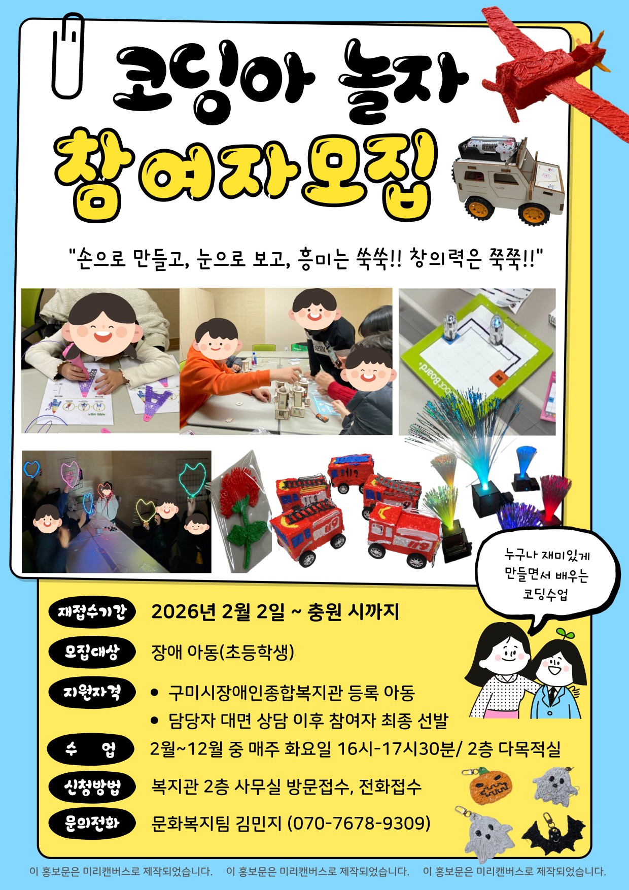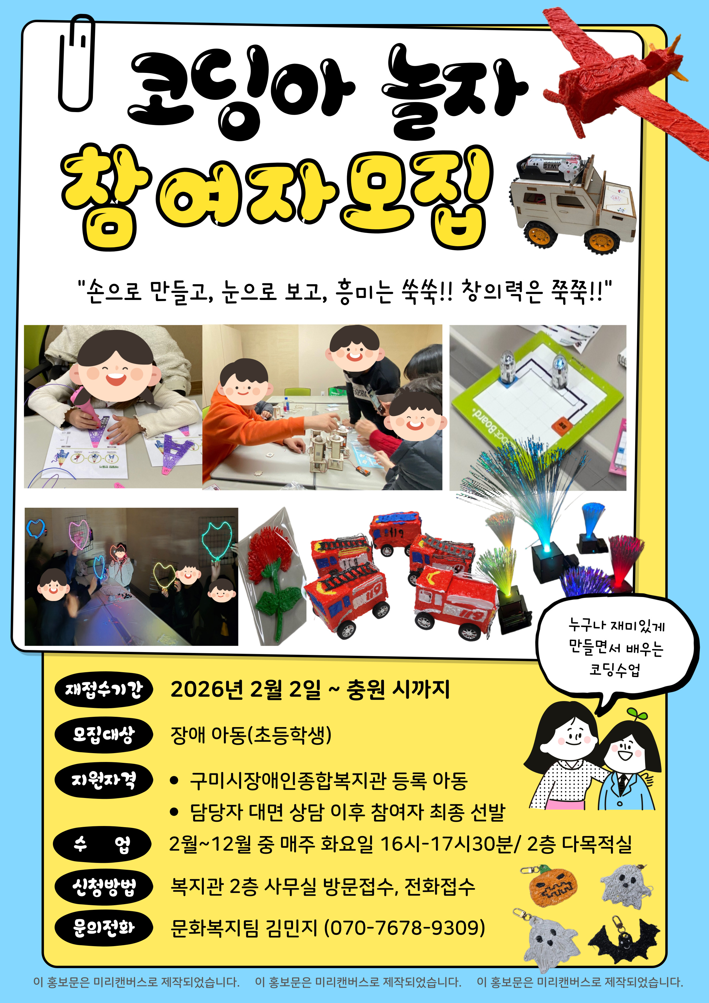 아동프로그램 <코딩아 놀자> 추가모집 안내