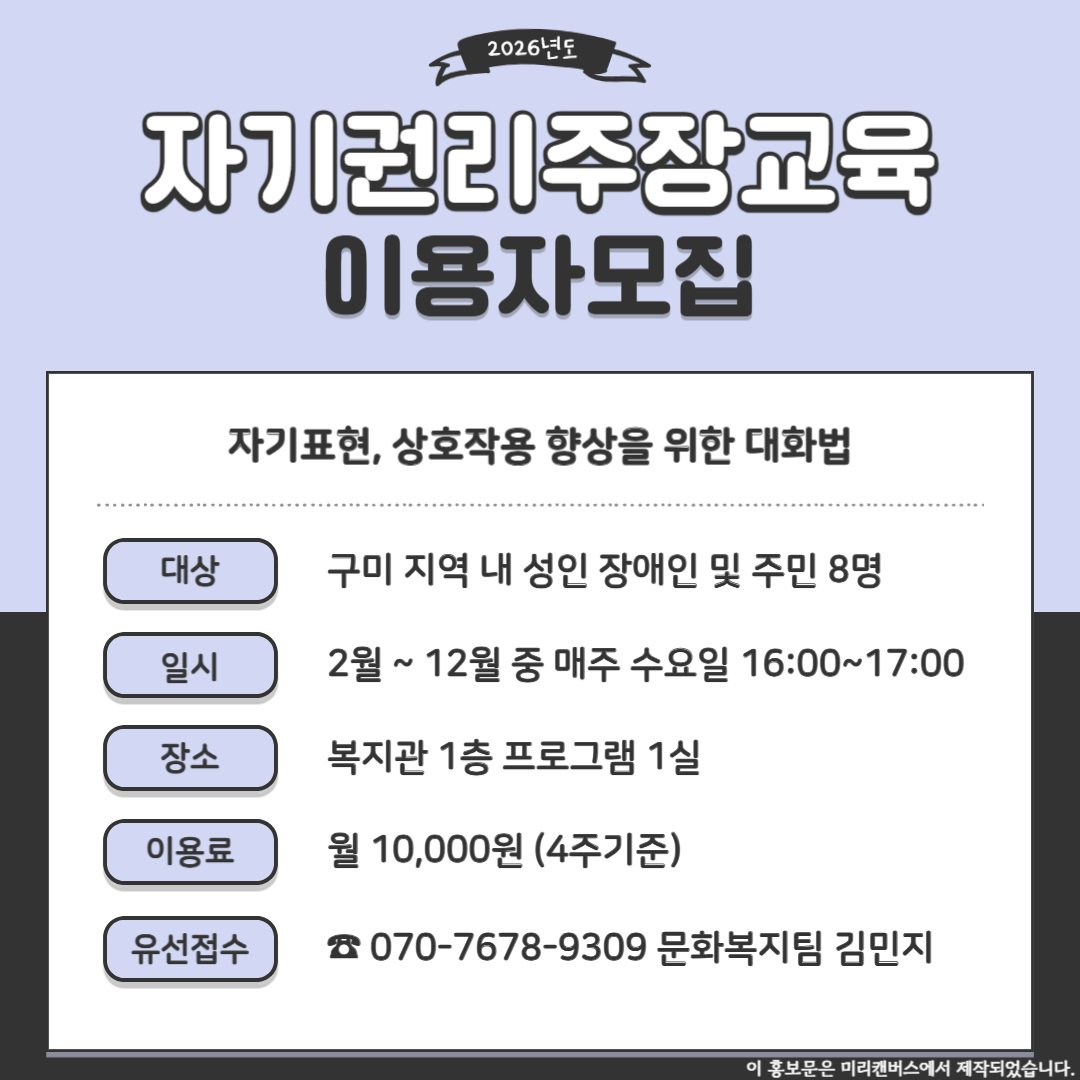 구미시장애인종합복지관 2026년 단기강사 합격자 공고