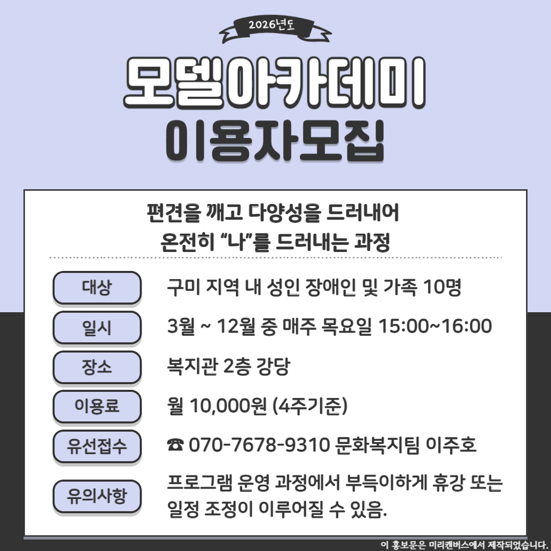 구미시장애인종합복지관 2026년 단기강사 합격자 공고