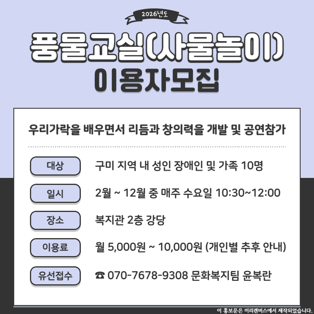 2026년도 구미시장애인종합복지관 세입ㆍ세출 예산 공고