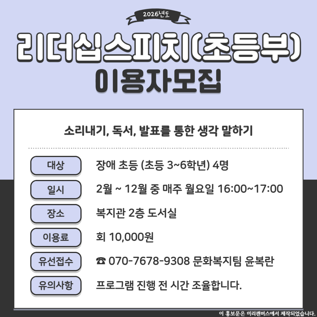 2026년도 여가문화ㆍ교육프로그램 이용자 모집 안내(1)