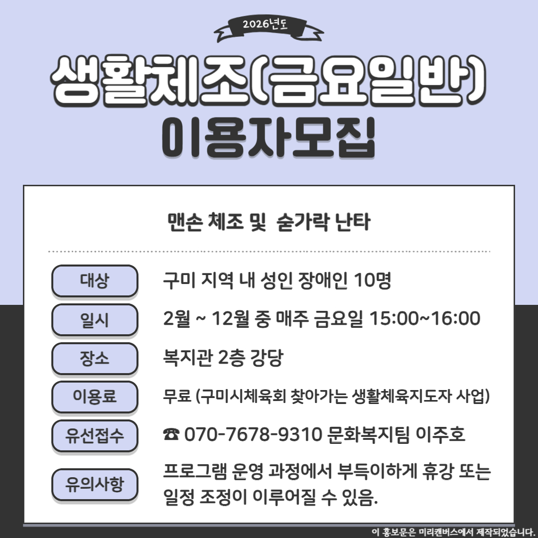 구미시장애인종합복지관 2026년 단기강사 합격자 공고