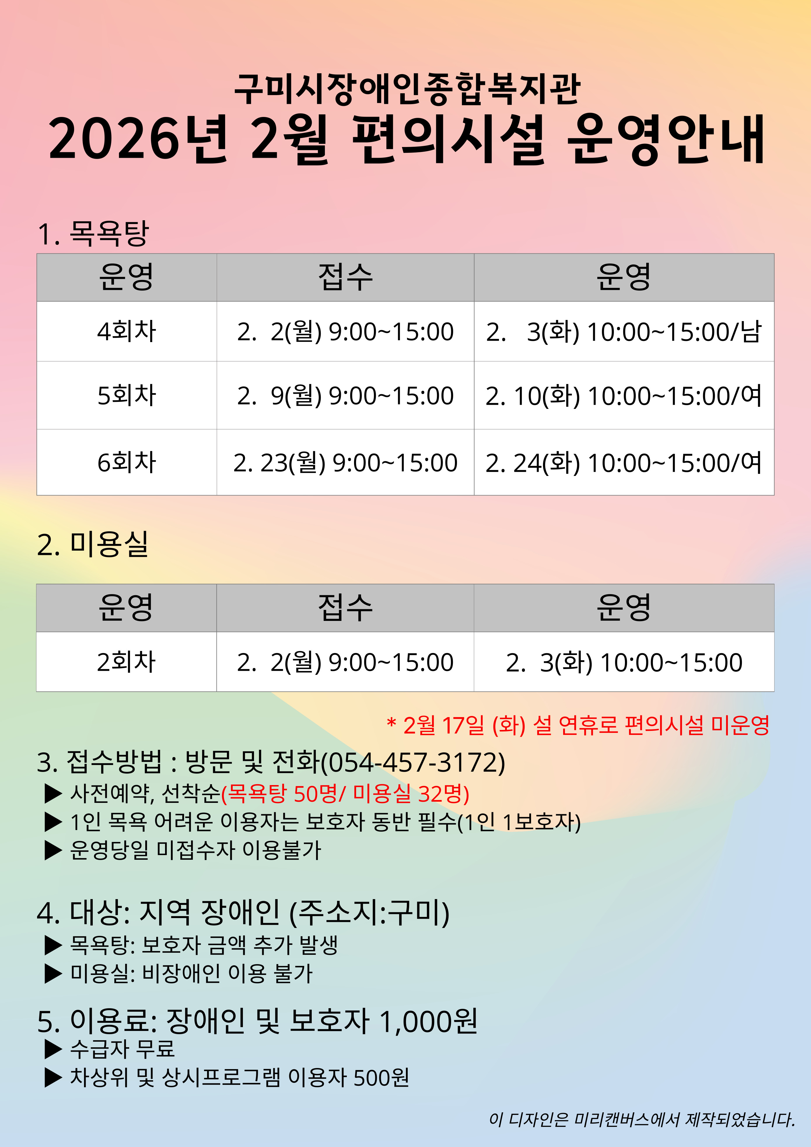 26년 2월 편의시설 운영 안내