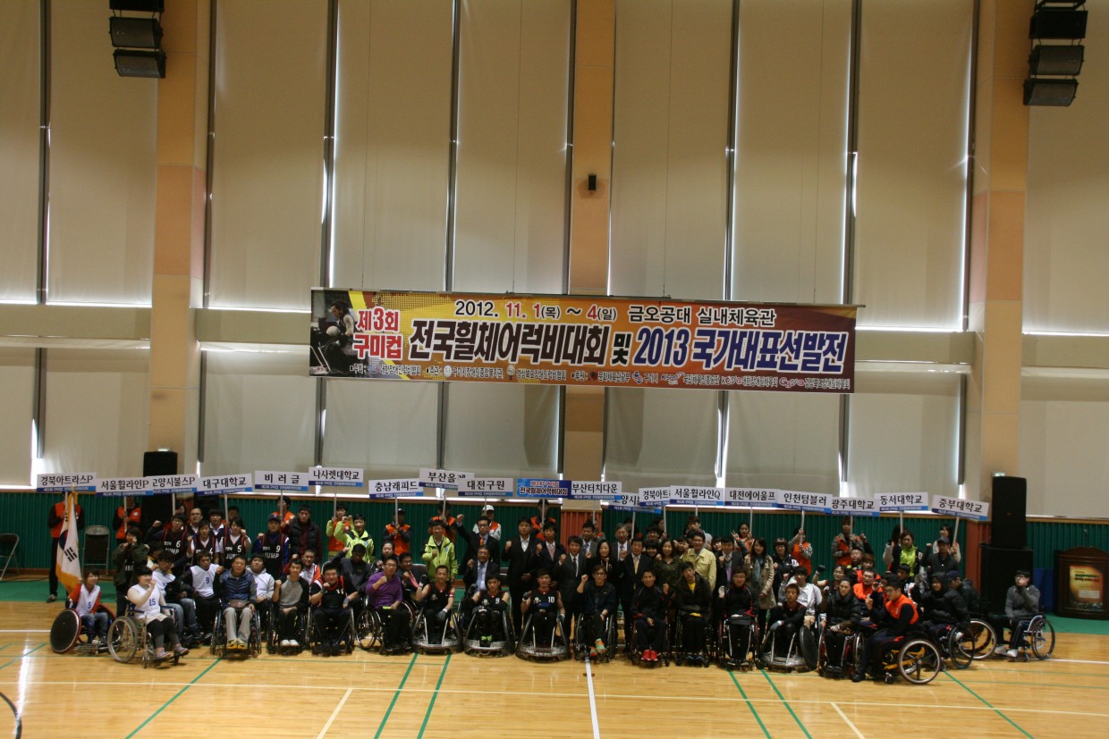 제3회 구미컵 전국휠체어럭비대회 및 2013년 국가대표선발전이 11월 1일부터 4일까지 금오공과대학교 체육관에서 열렸다. 이번 대회는 대한장애인럭비협회가 주최하고 구미시장애인종합복지관(권한대행 김숙희)과 경북장애인럭비협회(회장 이관순)가 공동 주관하는 대회로서 경북 구미팀인 아틀라스 휠체어럭비팀을 비롯하여 8개 시도 18개 팀이 참가하여 국내 휠체어럭비의 최강자를 가렸다.