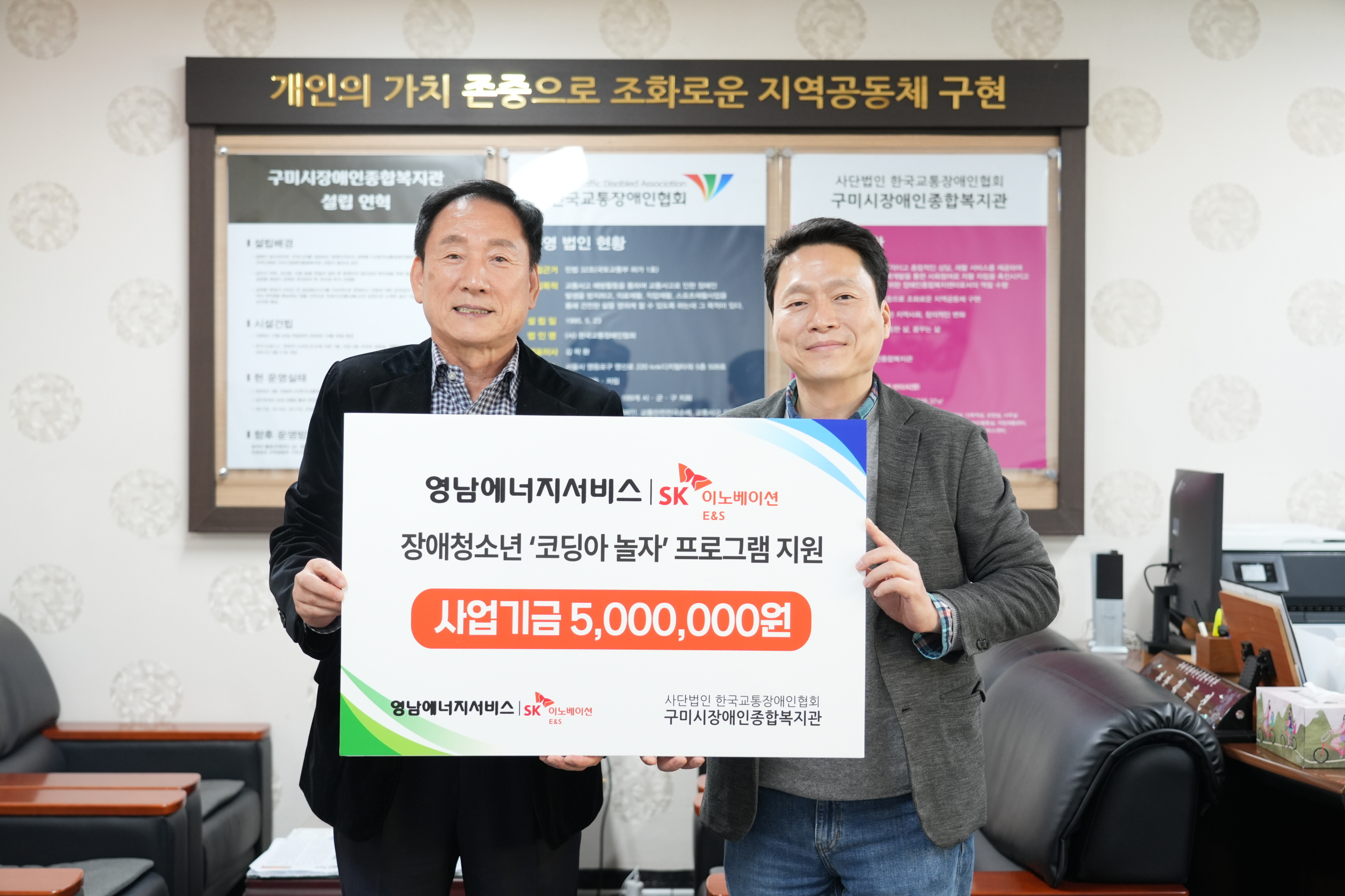 구미시장애인종합복지관(관장 김휴진)은 영남에너지서비스(구미)가 장애 아동·청소년 코딩 교육 프로그램 ‘코딩아 놀자’ 운영을 위해 지난해에 이어 올해도 500만원(누적 후원액 1천만원)을 후원했다고 24일 밝혔다.